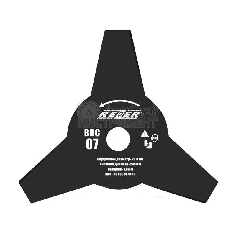 Нож 3-лучевой 230х20мм для бензокос REZER BC-07 BC-07 – прочный и надежный трехлопастной нож для скашивания жесткой растительности, сорняков, небольших кустарников и пр. Артикул 03.010.00015.