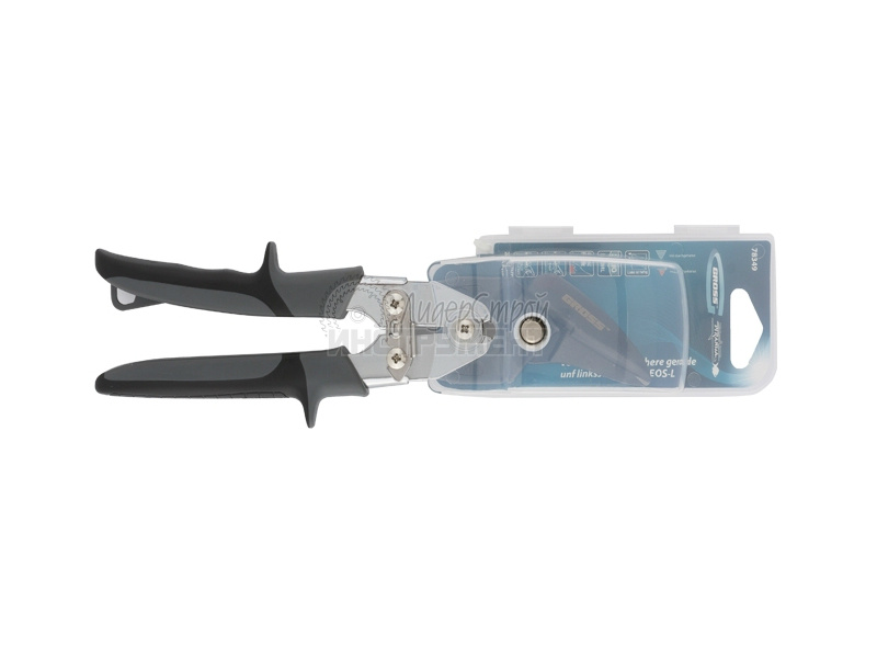 Ножницы по металлу бренда GROSS позволяют выполнять прямой и левый рез листового металла (толщина до 1,57 мм) и нержавеющей стали (толщина до 0,94 мм). Артикул – 78349.