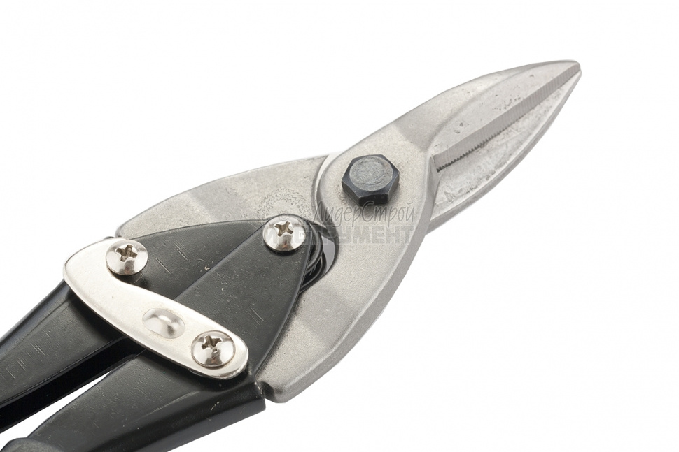 Двойной рычажный механизм позволяет при минимальных усилиях достигать максимального усилия реза. Твердость режущих кромок 56 HRc. Специальные насечки на режущих кромках не позволяют обрабатываемому материалу выскальзывать. Оснащены удобными двухкомпонентными эргономичными рукоятками. Используются при резке листового металла.