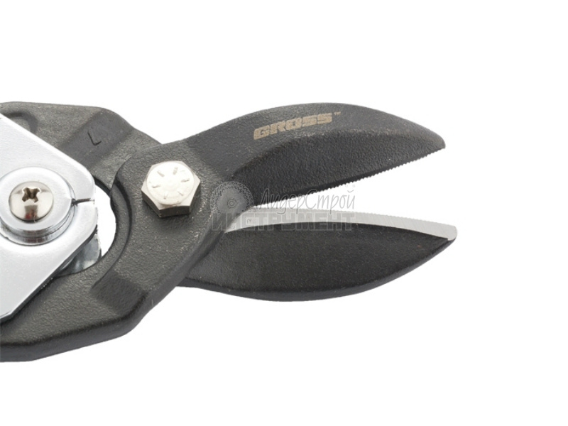 Ножницы по металлу торговой марки GROSS предназначены для проходного прямого и левого реза листового металла толщиной до 1,57 мм и нержавеющей стали толщиной до 0,94 мм. Рабочие части ножниц изготовлены из высоколегированной стали (CrMo), содержание молибдена и ванадия в ее составе придает необходимую жесткость и высокую твердость. Режущие губки проходят процесс индукционной закалки и имеют твердость 60–62 HRС. Ножницы общей длиной 255 мм оснащены эргономичными двухкомпонентными рукоятками, оригинальная форма которых минимизирует риск травм и обеспечивает удобство при длительных работах.