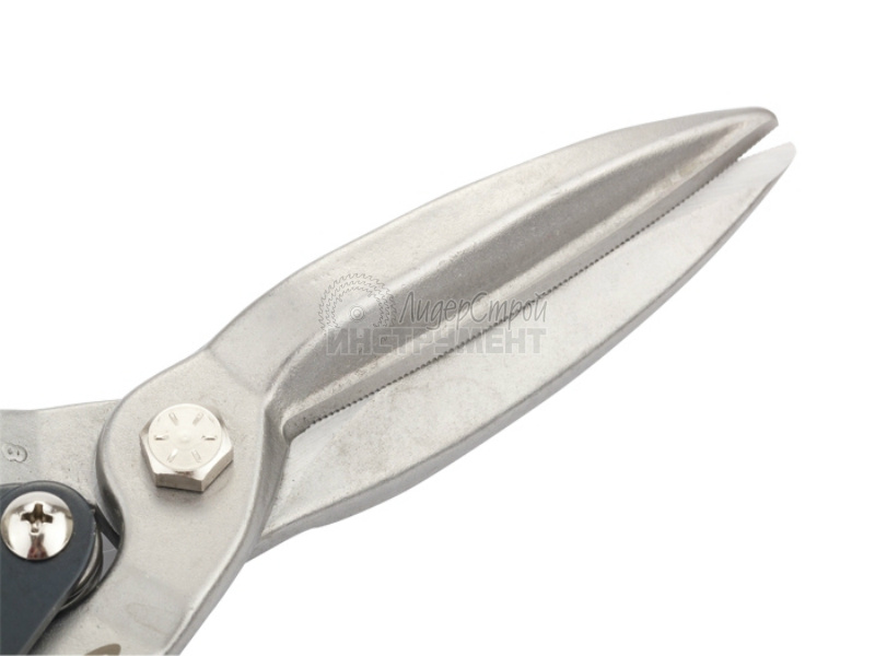 Ножницы по металлу торговой марки GROSS предназначены для проходного прямого и левого реза листового металла толщиной до 1,57 мм и нержавеющей стали толщиной до 0,94 мм. Рабочие части ножниц изготовлены из высоколегированной стали (CrMo), содержание молибдена и ванадия в ее составе придает необходимую жесткость и высокую твердость. Режущие губки проходят процесс индукционной закалки и имеют твердость 60–62 HRС. Ножницы общей длиной 255 мм оснащены эргономичными двухкомпонентными рукоятками, оригинальная форма которых минимизирует риск травм и обеспечивает удобство при длительных работах.