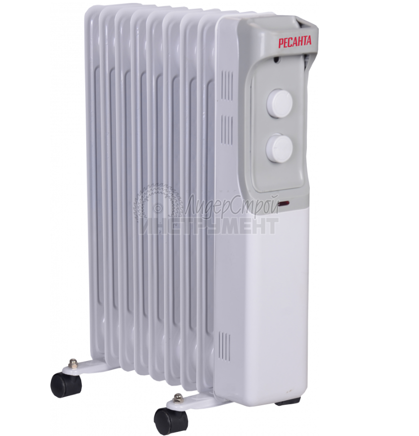 Масляный радиатор Ресанта предназначен для обогрева воздуха и создания комфортной атмосферы в холодное время года. В металлическом корпусе находится масло, нагреваемое до высокой температуры при помощи нагревательного элемента. Далее радиатор отдает тепло помещению. Масляный радиатор оснащен термостатом, что позволяет ему автоматически поддерживать в помещении заданную пользователем температуру. Существенным плюсом является и то, что он обладает низкой температурой корпуса, благодаря чему практически не выжигает кислород в помещении.
