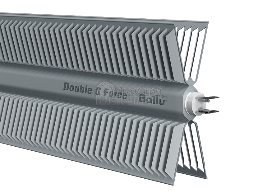 Конвектор оборудован нагревательным элементом в монолитном исполнении. Разработка Double-G-Force демонстрирует более эффективную работу по сравнению с традиционными аналогами. Специальная технология крепления повышает КПД нагревателя и увеличивает площадь теплоотдачи.