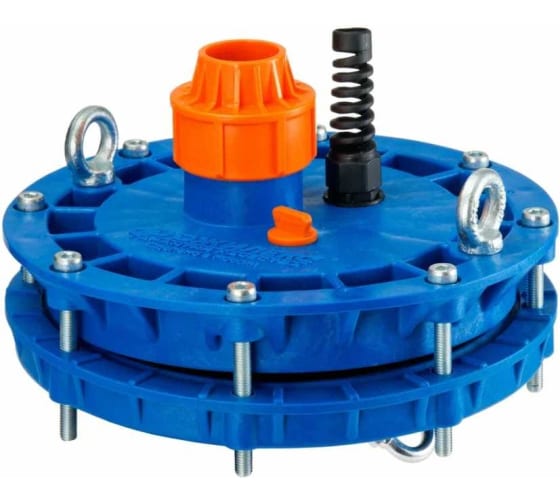 Предназначена для обустройства скважин в тех случаях, когда напорная труба от насоса выведена радиально ниже уровня среза обсадной трубы не менее чем на 200 мм (например, через скважинный адаптер).Крышка скважины применяется для того, чтобы герметизировать срез обсадной трубы скважины, обеспечить герметичный ввод и соединение электрокабеля насоса круглого сечения с наружным диаметром оболочки от 7 мм до 11 мм, с количеством проводников до 4-х, с сечением проводников до 2,5 мм², содержит проушину для подвеса насоса и дополнительную съемную заглушку для крепления шнура сливного клапана.