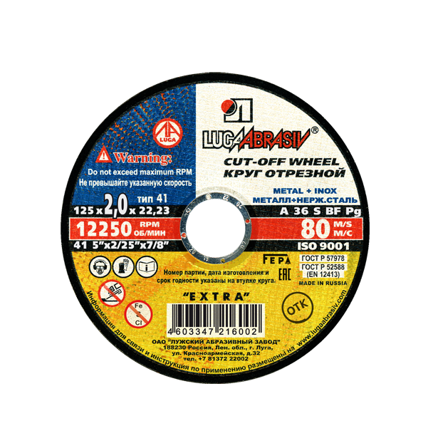 ЛУГА 125х2,0х22 A 36 S BF 80