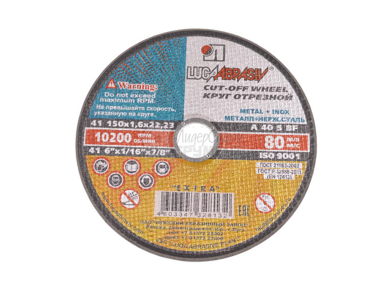 Диск отрезной армированный изготовлен на основе электрокорунда нормального марки 14А. Имея особо прочный профиль, используется в работах, связанных с резкой металла.