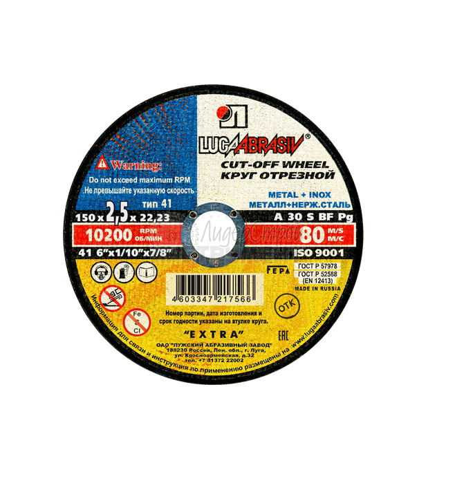Круг отрезной по металлу 150х2,5х22 A 30 S BF 80 ЛУГА (отзывы)