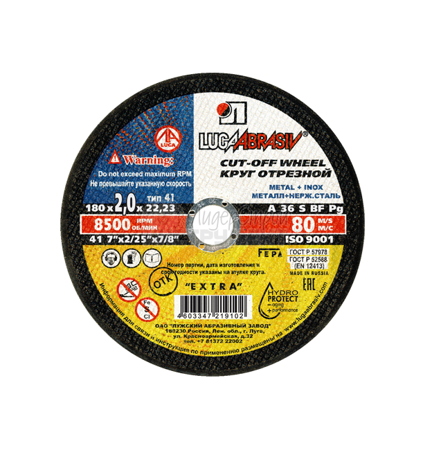 Круг отрезной по металлу 180х2,0х22 A 36 S BF 80 ЛУГА D11001802220000 купить по цене 39 руб - интернет-магазин ЛидерСтройИнструмент