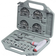 Отвертка предназначена для монтажа и демонтажа резьбовых соединений. Эргономичная Т-образная ручка инструмента улучшенного дизайна удобна для работы с усилием. В комплект к отвертке входят биты, изготовленные из хромованадиевой стали, длиной 25 мм с рабочими профилями SL, Phillips и Torx, головками – 4, 6, 7, 8, 9, 10, 11, 12 мм. Для удобства хранения и транспортировки отвертка с набором головок и бит упакована в пластиковый кейс.