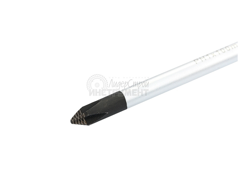 Отвертка торговой марки GROSS изготовлена из высококачественной инструментальной стали S2. Предназначена отвертка для монтажа/демонтажа резьбовых соединений с крестообразным типом шлица (PH1). Насечки на жале увеличивают трение между отверткой и шлицом крепежа, что исключает возможность повреждения шлица. На стержень отвертки длиной 100 мм нанесено хромовое защитное покрытие, которое защищает металл от коррозии. Трехкомпонентная рукоятка длиной 99 мм, имеющая запатентованную форму, удобно и надежно фиксируется в руке. Твердость рабочих частей отвертки (стержень, рукоятка) составляет 52 HRC, максимальный крутящий момент затяжки — 3,5 H*m. Снабжена отвертка подвесной картой, удобной для размещения инструмента на стенде.