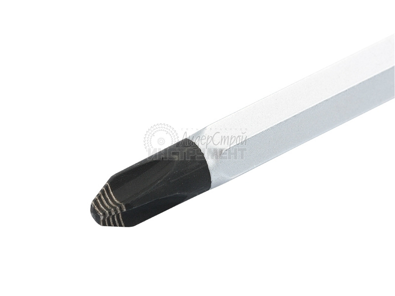 Жало отвертки изготовлено из легированной стали (CrV), прошедшей термообработку. Эргономичная трехкомпонентная рукоятка antislip обеспечивает удобный захват и эффективное вращение отвертки.