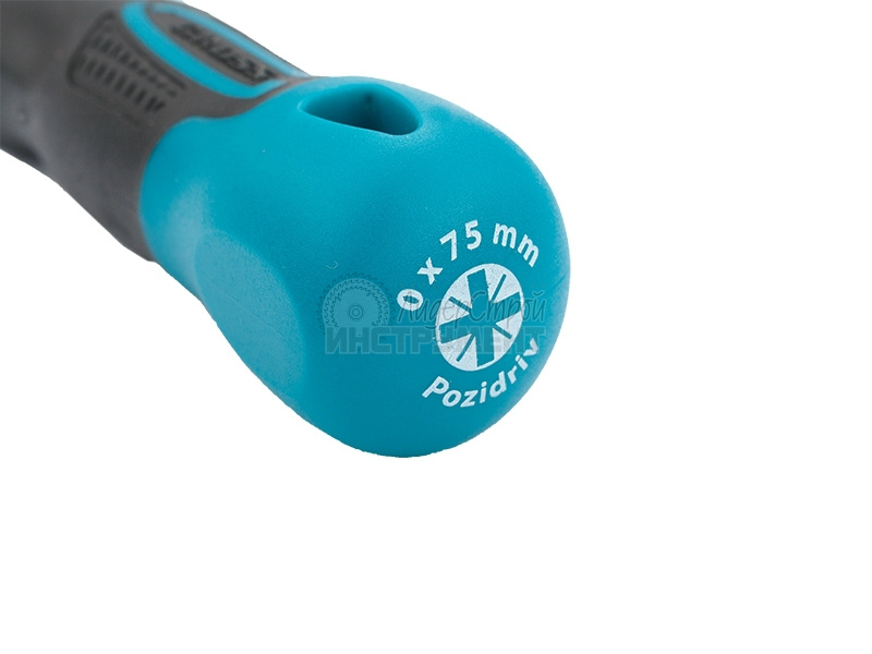 Отвертка торговой марки GROSS изготовлена из высококачественной инструментальной стали S2. Предназначена отвертка для монтажа/демонтажа резьбовых соединений с крестообразным типом шлица и дополнительными направляющими (PZ0). Насечки на жале увеличивают трение между отверткой и шлицом крепежа, что исключает возможность повреждения шлица. На стержень отвертки длиной 75 мм нанесено хромовое защитное покрытие, которое защищает металл от коррозии. Трехкомпонентная рукоятка длиной 90 мм, имеющая запатентованную форму, удобно и надежно фиксируется в руке. Твердость рабочих частей отвертки (стержень, рукоятка) составляет 56 HRC, максимальный крутящий момент затяжки — 1,0 H*m. Снабжена отвертка подвесной картой, удобной для размещения инструмента на стенде.