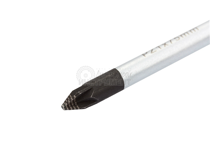 Отвертка торговой марки GROSS изготовлена из высококачественной инструментальной стали S2. Предназначена отвертка для монтажа/демонтажа резьбовых соединений с крестообразным типом шлица и дополнительными направляющими (PZ1). Насечки на жале увеличивают трение между отверткой и шлицом крепежа, что исключает возможность повреждения шлица. На стержень отвертки длиной 75 мм нанесено хромовое защитное покрытие, которое защищает металл от коррозии. Трехкомпонентная рукоятка длиной 99 мм, имеющая запатентованную форму, удобно и надежно фиксируется в руке. Твердость рабочих частей отвертки (стержень, рукоятка) составляет 56 HRC, максимальный крутящий момент затяжки — 3,5 H*m. Снабжена отвертка подвесной картой, удобной для размещения инструмента на стенде.