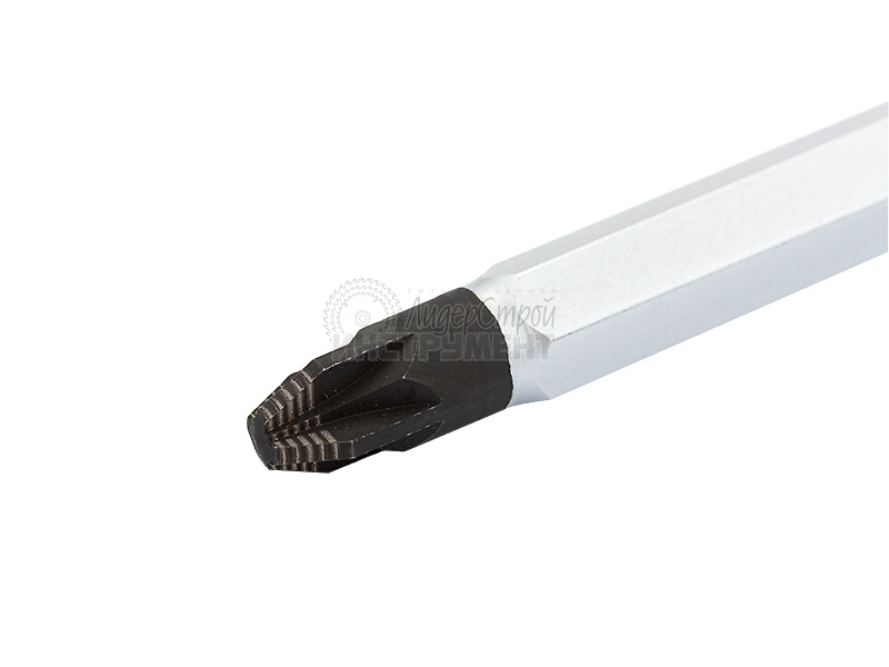 Отвертка торговой марки GROSS изготовлена из высококачественной инструментальной стали S2. Предназначена отвертка для монтажа/демонтажа резьбовых соединений с крестообразным типом шлица и дополнительными направляющими (PZ3). Насечки на жале увеличивают трение между отверткой и шлицом крепежа, что исключает возможность повреждения шлица. На стержень отвертки длиной 150 мм нанесено хромовое защитное покрытие, которое защищает металл от коррозии. Трехкомпонентная рукоятка длиной 119 мм, имеющая запатентованную форму, удобно и надежно фиксируется в руке. Твердость рабочих частей отвертки (стержень, рукоятка) составляет 56 HRC, максимально крутящий момент затяжки — 19,5 H*m. Снабжена отвертка подвесной картой, удобной для размещения инструмента на стенде.