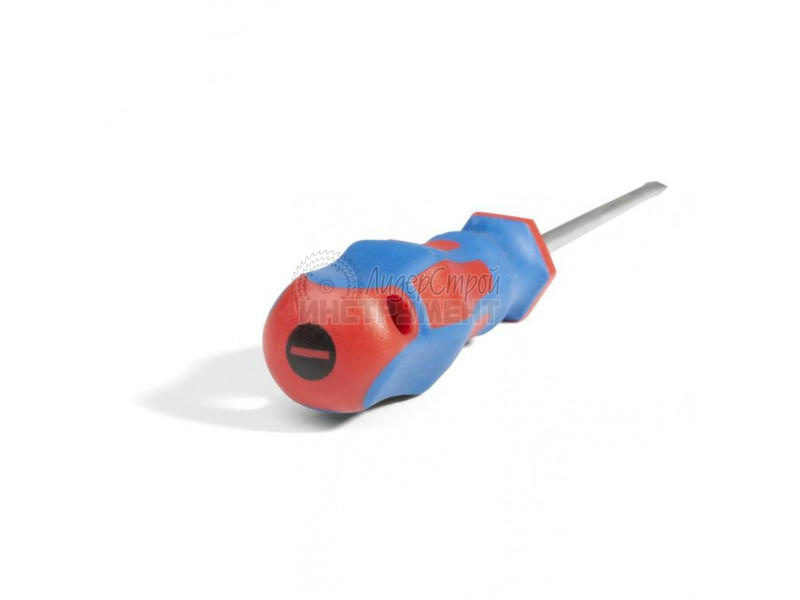 Жало отвертки изготовлено из легированной стали (CrV), прошедшей термообработку. Эргономичная трехкомпонентная рукоятка antislip обеспечивает удобный захват и эффективное вращение отвертки.