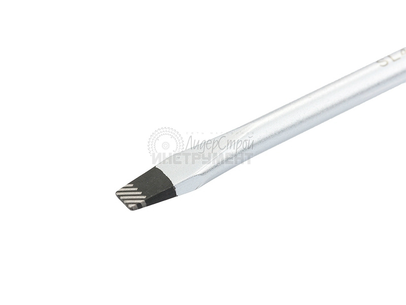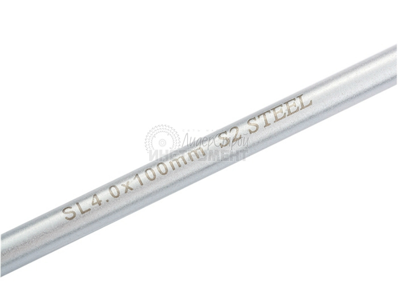 Отвертка торговой марки GROSS изготовлена из высококачественной инструментальной стали S2. Предназначена отвертка для монтажа/демонтажа резьбовых соединений с плоским типом шлица (SL4,0). Насечки на жале увеличивают трение между отверткой и шлицом крепежа, что исключает возможность повреждения шлица. На стержень отвертки длиной 100 мм нанесено хромовое защитное покрытие, которое защищает металл от коррозии. Трехкомпонентная рукоятка длиной 99 мм, имеющая запатентованную форму, удобно и надежно фиксируется в руке. Твердость рабочих частей отвертки (стержень, рукоятка) составляет 56 HRC, максимальный крутящий момент затяжки — 5,5 H*m. Снабжена отвертка подвесной картой, удобной для размещения инструмента на стенде.