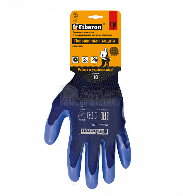Перчатки Fiberon из полиэстера с латексным покрытием методом штамповки - новый тренд в производстве перчаток! Специальное оборудование "впечатывает" латекс в основу, из-за чего перчатки более крепкие, долговечные и при производстве наносится меньший вред окружающей среде. Покрытие методом штамповки выдерживает бОльшие нагрузки, чем обычное латексное покрытие и обеспечивает отличный захват влажных и скользких предметов. Перчатки отлично подходят для работ, где требуется высокая износостойкость: работы с камнем, металлом, строительство и монтаж.