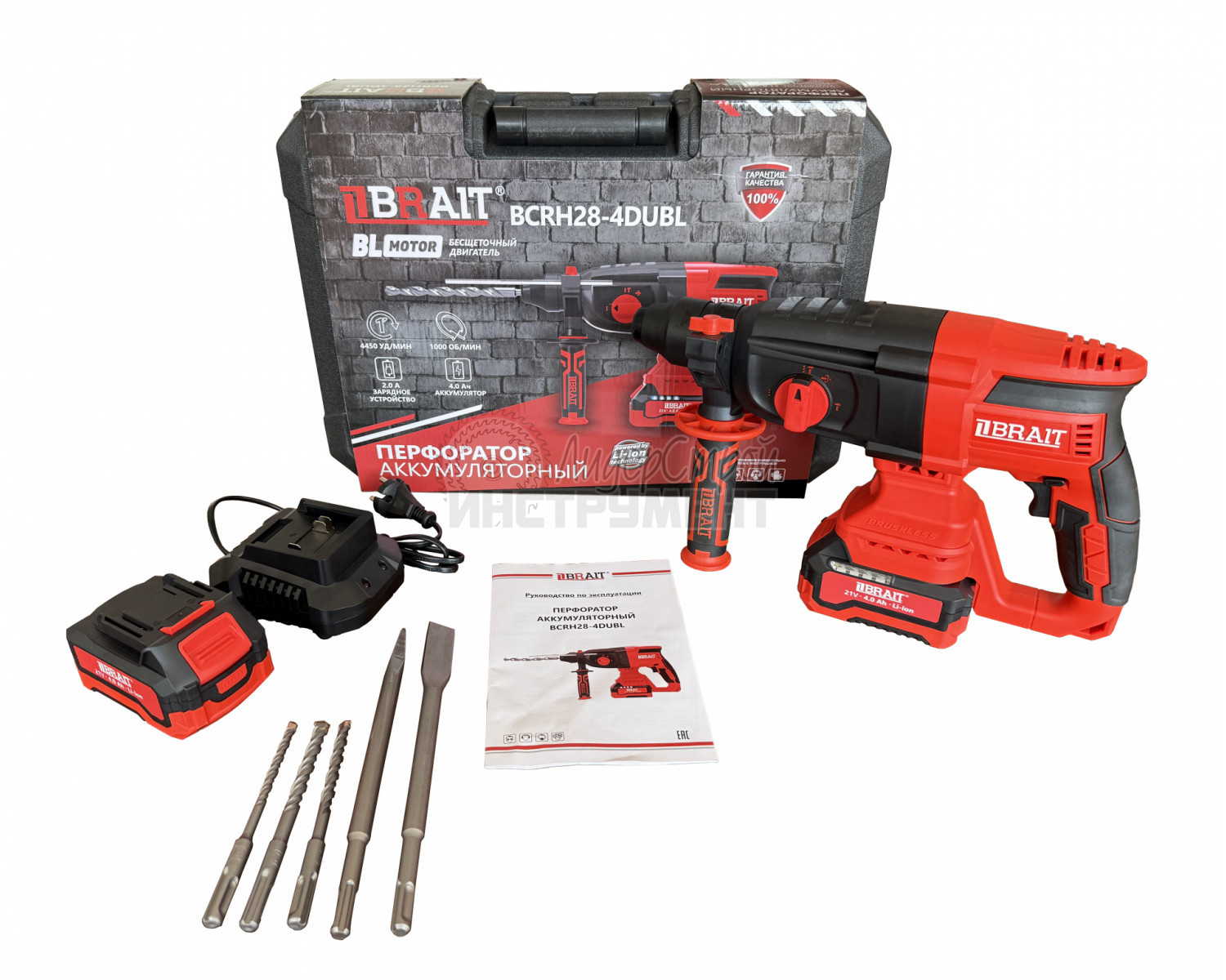 Перфоратор аккумуляторный BRAIT BCRH28-4DUBL предназначен для сверления отверстий в бетоне, стали и древесине. Он оборудован бесщеточным двигателем, который обеспечивает отличную производительность и долгий срок службы. Благодаря системе SDS-Plus замена оснастки занимает минимум времени и усилий. Модель питается от литий-ионного аккумулятора напряжением 21В.