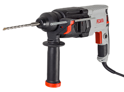 Перфоратор ВИХРЬ – электроинструмент, аналогичный дрели, но с наличием не механического, а пневматического ударного механизма. Именно поэтому перфоратор используют для сложных работ по твёрдым материалам - бетону, кирпичу, металлам. Агрегат используется для сверления и пробивания отверстий в прочных материалах без приложения особых физических усилий со стороны оператора. Принцип работы перфоратора – это разрушение обрабатываемого материала с помощью поступательных и вращательных действий рабочего элемента. Состоит перфоратор из электрического двигателя, редуктора, ударного механизма и патрона для крепления рабочих инструментов (буры, коронки, зубила и т.д.).