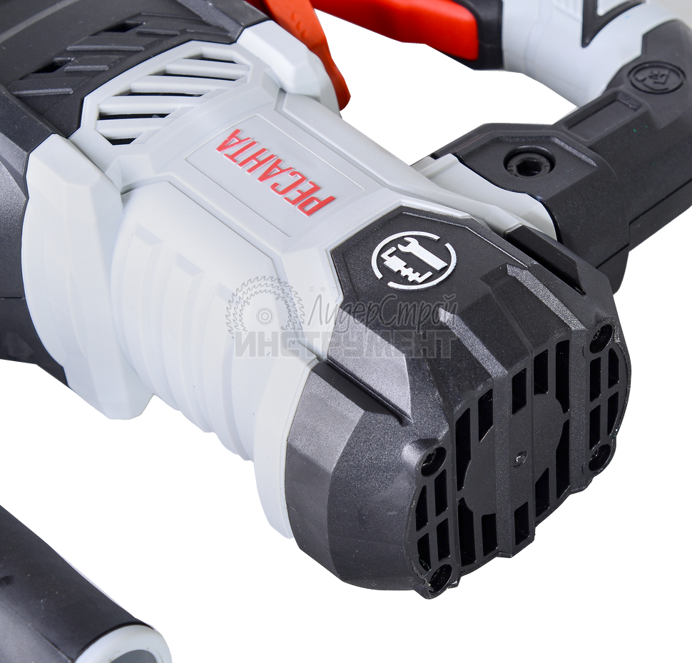 удобное расположение переключателей. Вытянутый корпус позволяет эффективно работать в труднодоступных местах. Для снижения нагрузки на руки рукоятки обрезинены и снабжены виброизолирующими элементами.