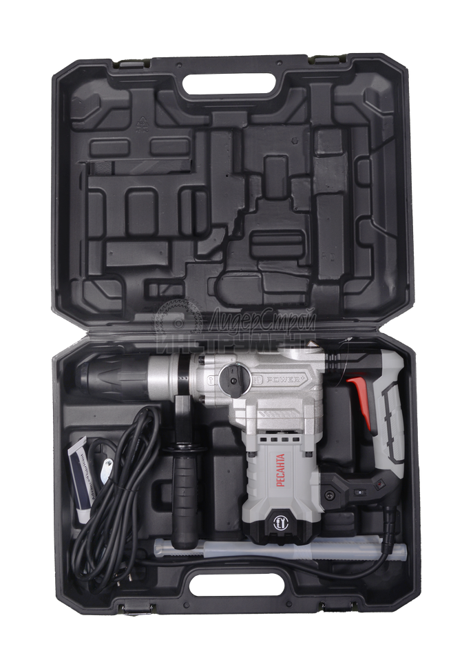 Перфоратор Ресанта П-42-2000КМ мощностью 2000 Вт обеспечит сверление с ударом и без удара для выполнения отверстий в бетонных поверхностях.