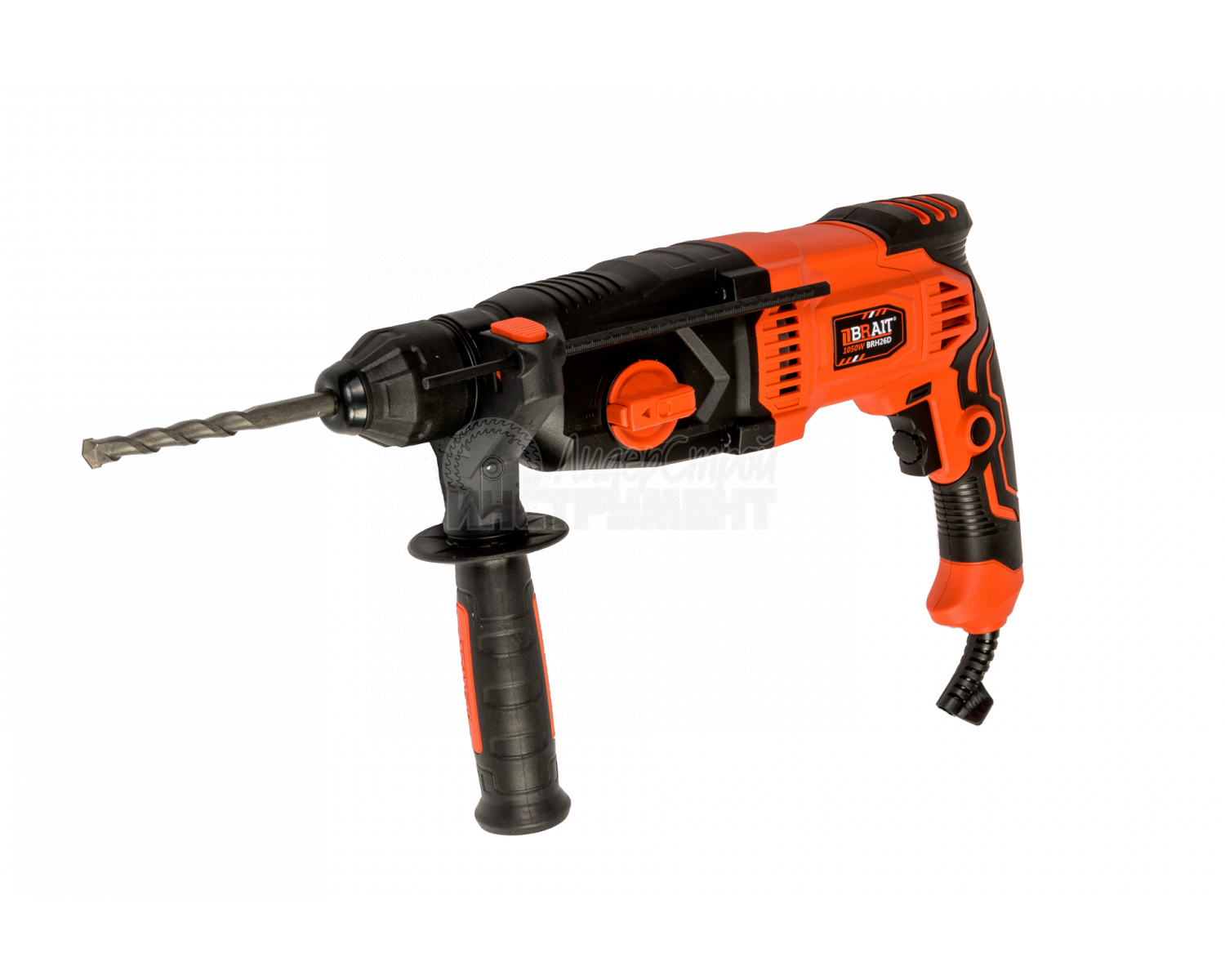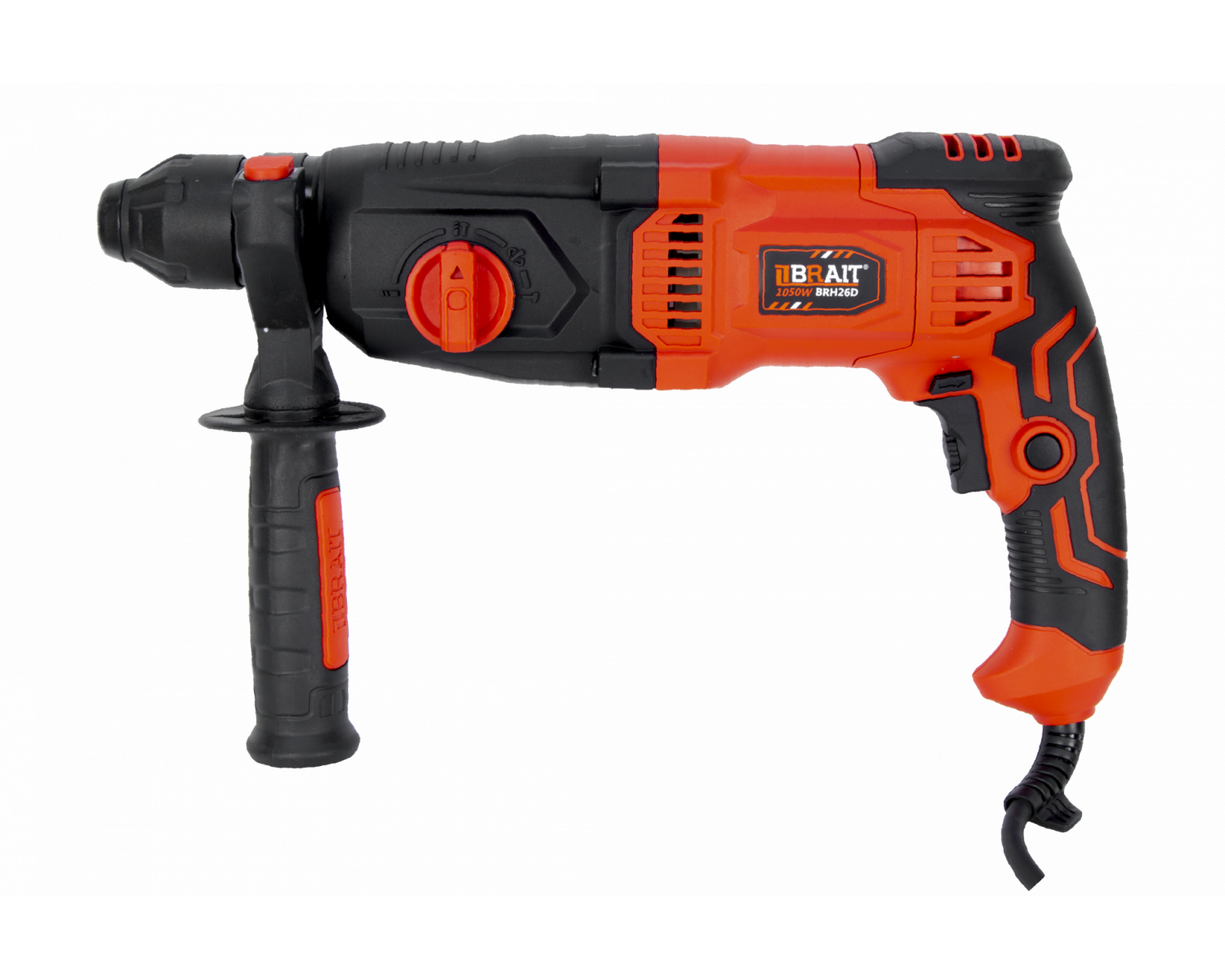 Перфоратор BRAIT BRH26D PRO 21.01.101.087 оснащен производительным двигателем мощностью 1050 Ватт и способен работать в трех режимах: сверление, сверление с ударом и долбление.