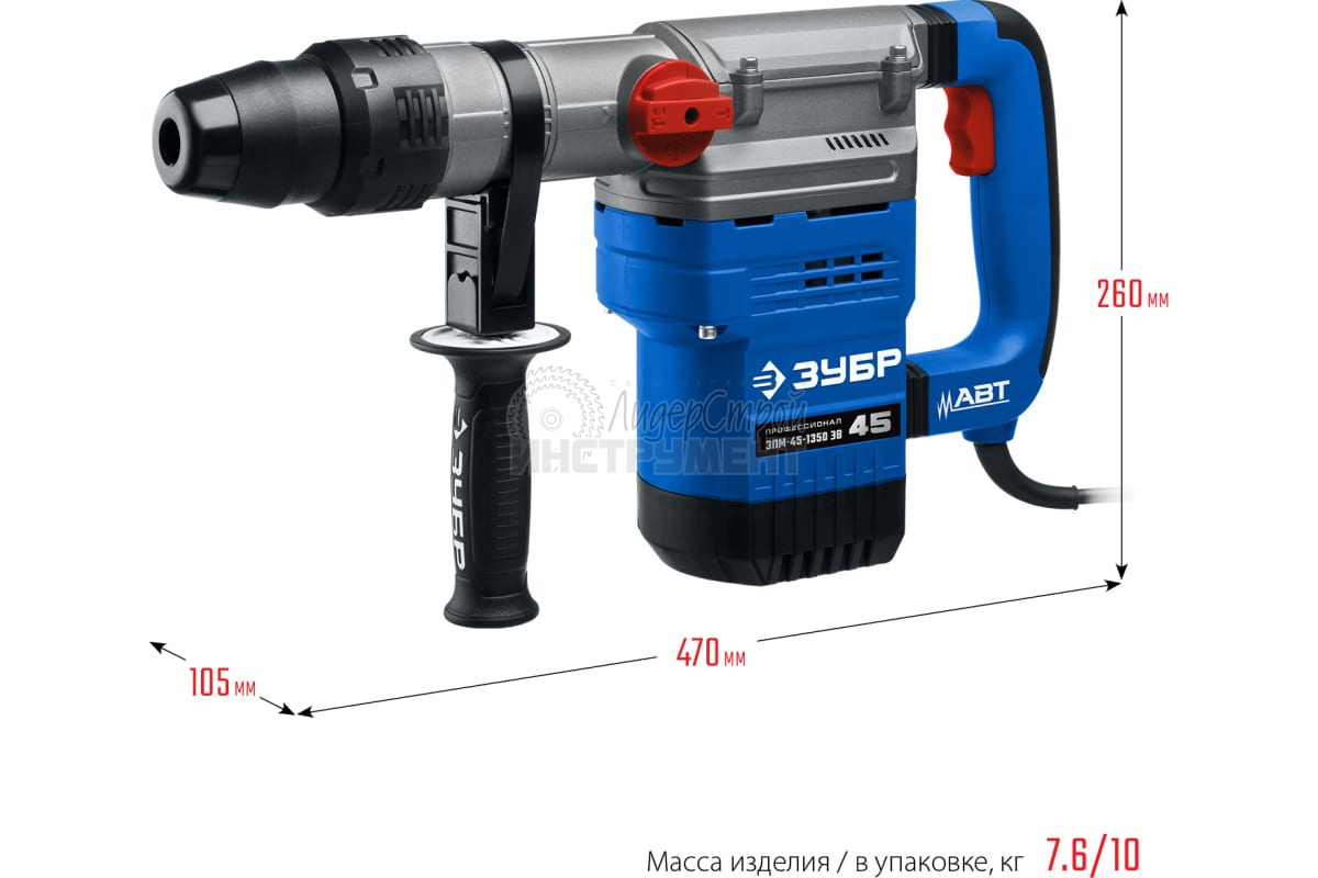 Перфоратор электрический ЗУБР Профи ЗПМ-45-1350 ЭВ SDS max ЗПМ-45-1350 ЭВ купить по цене 18 900 руб - интернет-магазин ЛидерСтройИнструмент