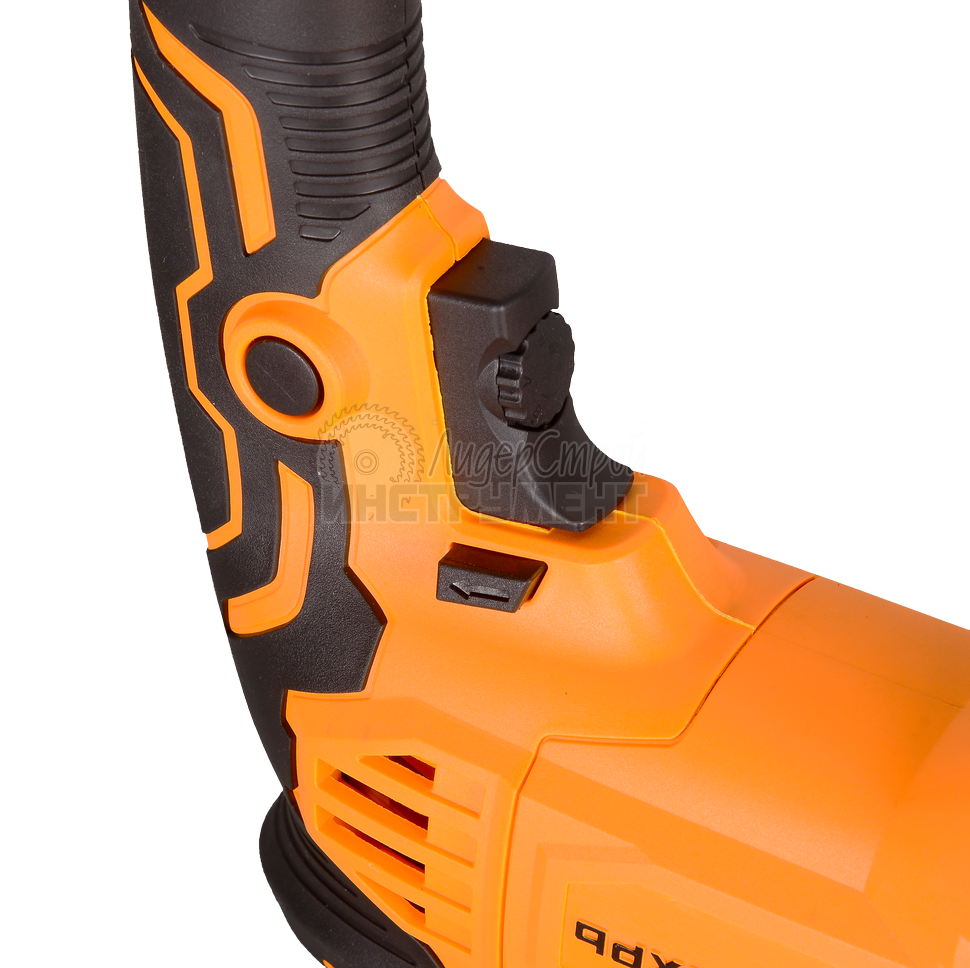 удобное расположение переключателей. Вытянутый корпус позволяет эффективно работать в труднодоступных местах. Для снижения нагрузки на руки рукоятки обрезинены и снабжены виброизолирующими элементами.