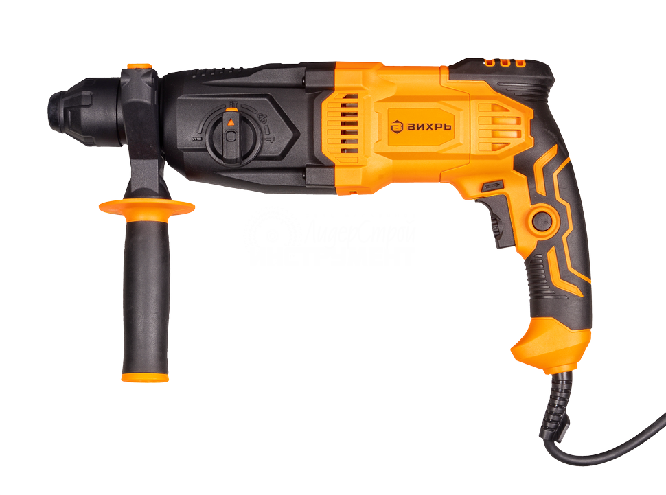 Перфоратор ВИХРЬ – электроинструмент, аналогичный дрели, но с наличием не механического, а пневматического ударного механизма. Именно поэтому перфоратор используют для сложных работ по твёрдым материалам - бетону, кирпичу, металлам. Агрегат используется для сверления и пробивания отверстий в прочных материалах без приложения особых физических усилий со стороны оператора. Принцип работы перфоратора – это разрушение обрабатываемого материала с помощью поступательных и вращательных действий рабочего элемента. Состоит перфоратор из электрического двигателя, редуктора, ударного механизма и патрона для крепления рабочих инструментов (буры, коронки, зубила и т.д.).