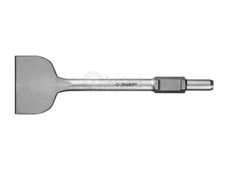 Лопаточное зубило круглой формы применяется в демонтажных работах на асфальтовом покрытии, бетоне и кирпичной кладке. Используется с отбойными молотками системы крепления НЕХ 30 мм. Артикул: 29375-125-400.