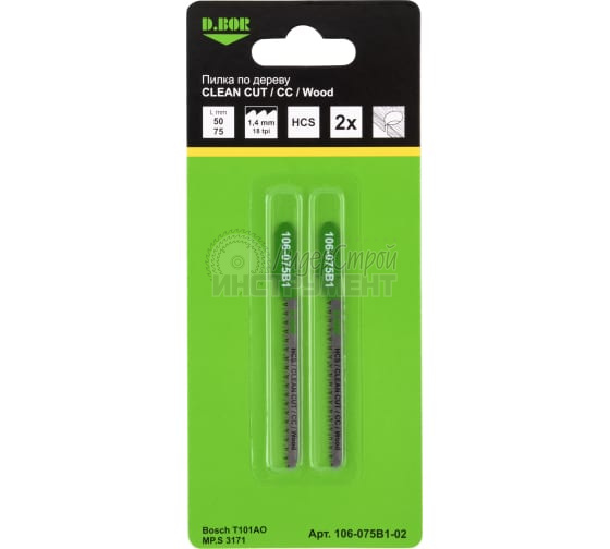 Пилки по дереву для лобзика 50/75х1,4мм HCS T101AO 2шт D.BOR D-106-075B1-02 D-106-075B1-02 купить по цене 191 руб - интернет-магазин ЛидерСтройИнструмент