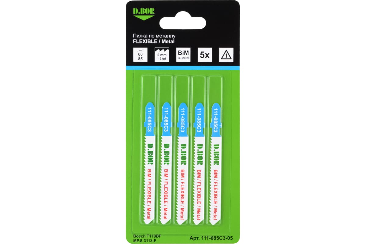 Пилки по металлу для лобзика 60/85х2мм BIM T118BF 5шт D.BOR D-111-085C3-05