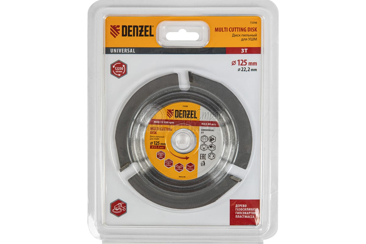 Пильный диск для УШМ Denzel Мультирез 73398, 125 х 22,2 мм, позволяет быстро распилить древесину, тонкий пластик, гипсокартон и газосиликат. Является оснасткой для углошлифовальных машин, что делает его универсальным. Будет полезен как профессиональным мастерам, так и домашним умельцам. Перед эксплуатацией необходимо изучить инструкцию как диска, так и углошлифовальной машины.