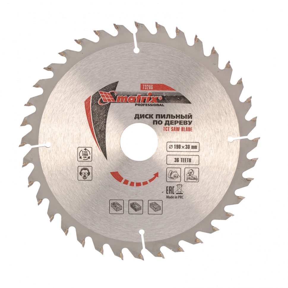 Диски MATRIX Professional предназначены для продольного и поперечного распила древесины. Корпус диска шлифованный, изготовлен из стали 65Г и термонормализован. Зубья из ВК8 припаяны высокопрочным припоем. Алмазная заточка с выхаживанием значительно увеличивает срок службы инструмента. Дополнительный боковой разворот передней поверхности зубьев позволяет производить более качественное и чистое пиление.
