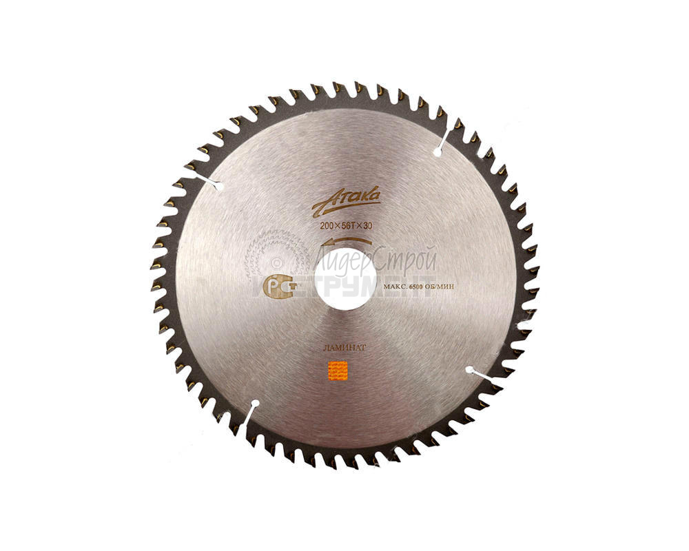 Профессиональный отрезной круг для качественной резки ламината, заготовок из ДСП, фанеры и пр. Профиль зубчиков — плоский с прямым наклоном. Артикул 8078030.