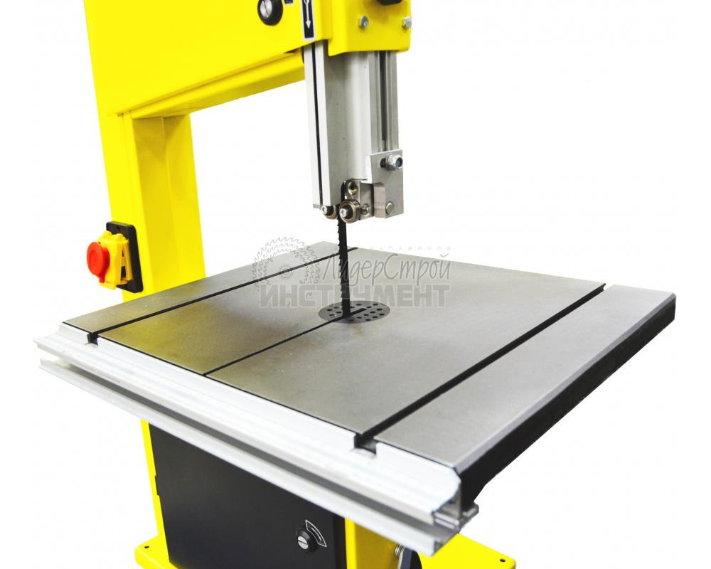 На станке используются пильные полотна шириной от 9,5 до 37 мм, что позволяет осуществлять как прямолинейный, так и фигурный распил. Ослабление натяжения полотна осуществляется специальным рычагом в одно движение.