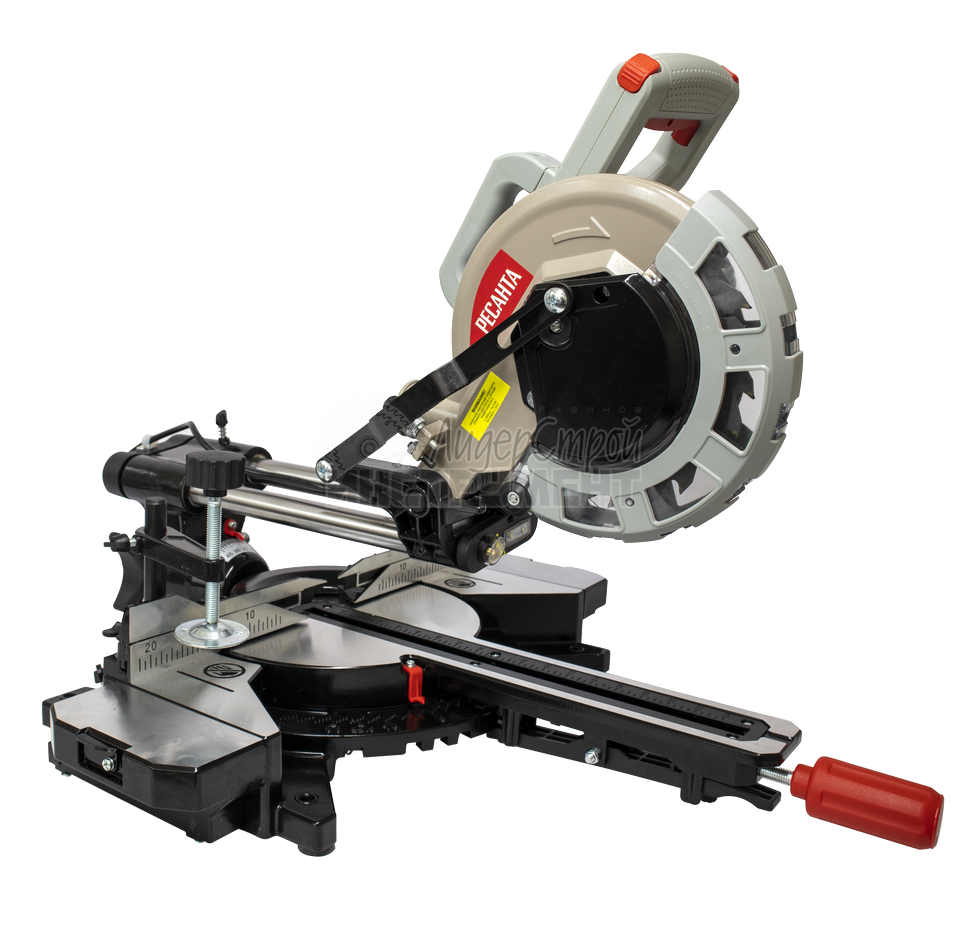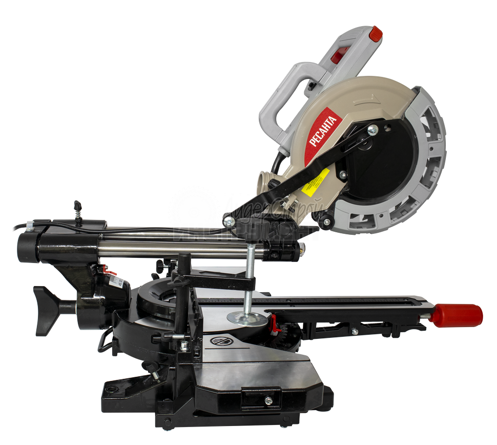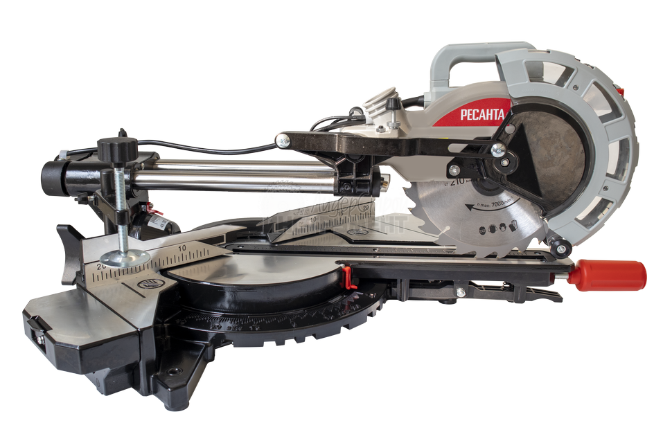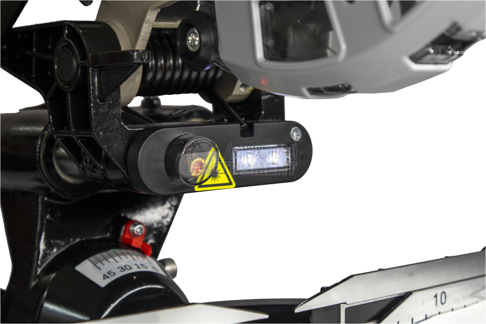 • поворотные механизмы позволяют распилить заготовку под углом до 52° вправо и до 45° влево;