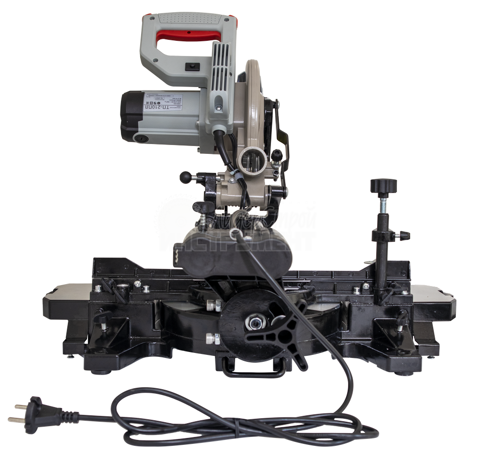 Комплектуется поворотным основанием со шкалой разметки для пиления под различным углом. Устойчивая и надежная конструкция.