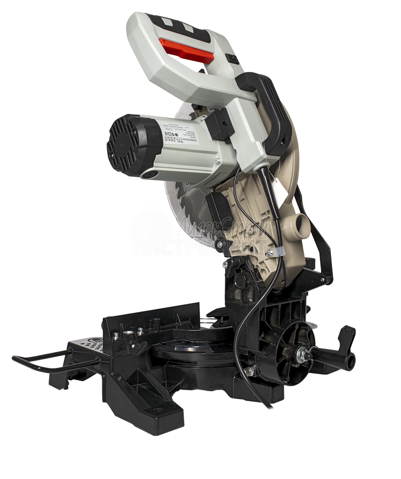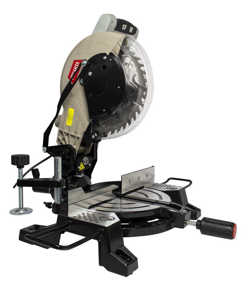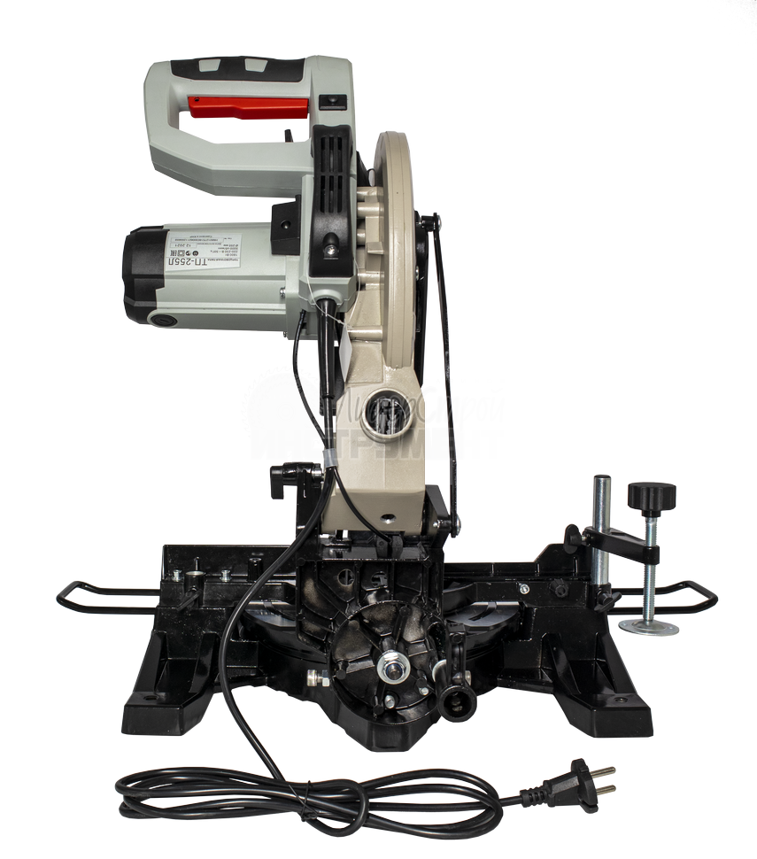 Комплектуется поворотным основанием со шкалой разметки для пиления под различным углом. Устойчивая и надежная конструкция.