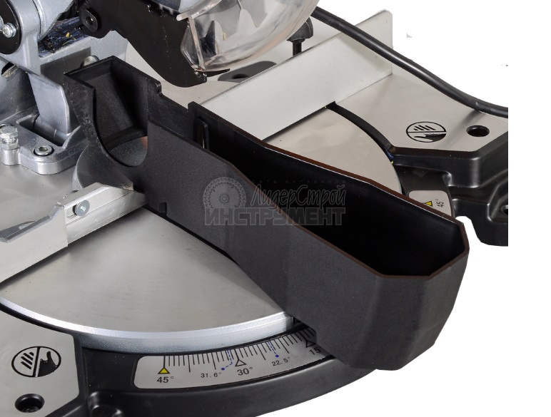 • поворотные механизмы позволяют распилить заготовку под углом до 52° вправо и до 45° влево;