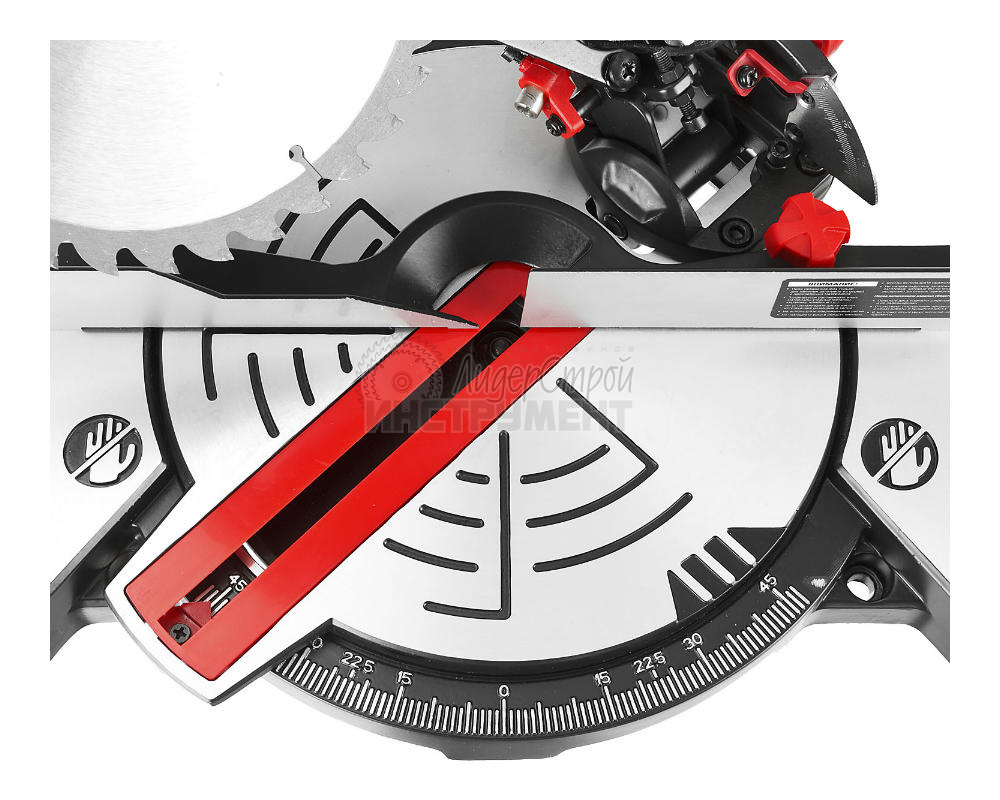 Комплектуется поворотным основанием со шкалой разметки для пиления под различным углом. Устойчивая и надежная конструкция.
