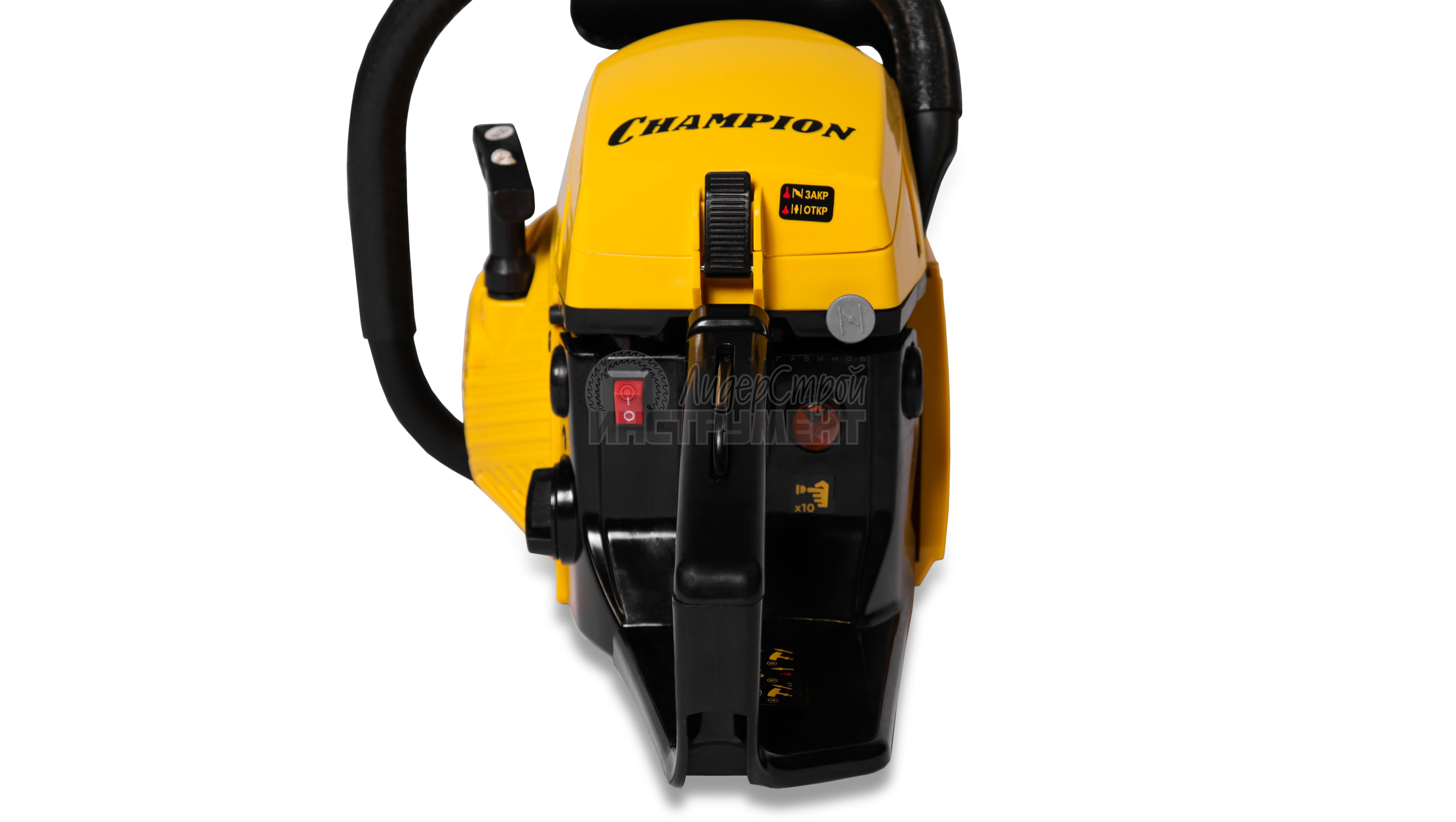 Бензопила Champion 246-15 – легкая компактная бензиновая цепная пила для заготовки дров и отпиливания сухих веток и сучьев. Пила оборудована высокооборотистым двухтактным бензиновым двигателем мощностью 1,9 л.с. Мотор развивает внушительные 12500 оборотов в минуту. Работает на топливной смеси 50:1, что означает минимальное добавление двухтактного масла в бензин (всего 20 грамм на 1 литр АИ-92). При таком соотношении топливной смеси, достигается минимальный выхлоп и минимальное загрязнение поршневой группы отложениями остатков сгорания.