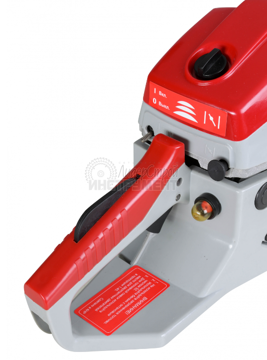 инструмент прост в использовании: курок газа, кнопка блокировки случайного старта, тумблер включения расположены на рабочей рукоятке.