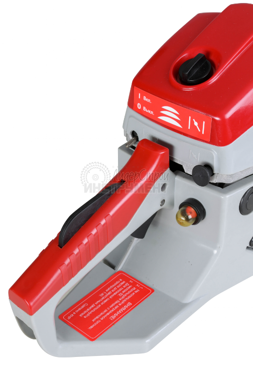 инструмент прост в использовании: курок газа, кнопка блокировки случайного старта, тумблер включения расположены на рабочей рукоятке.