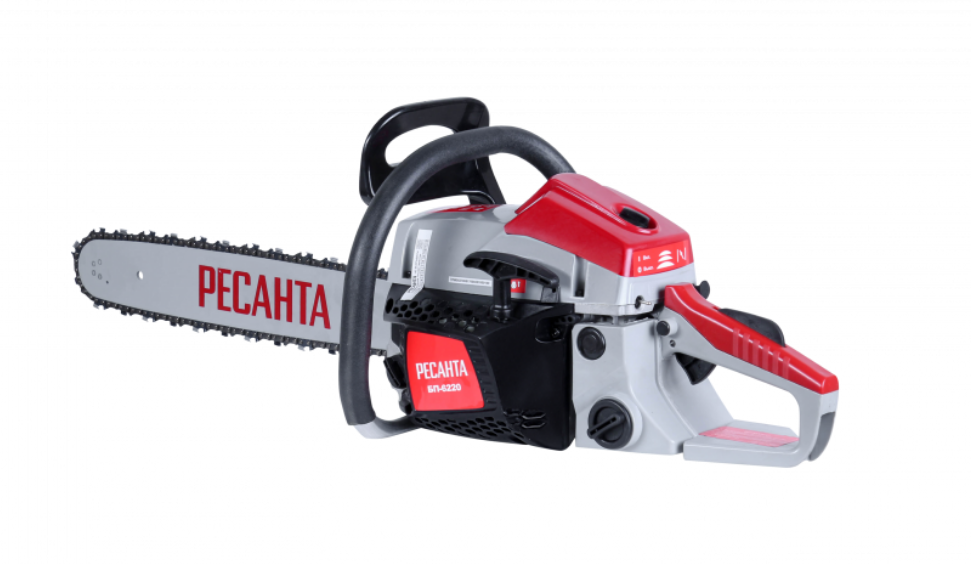 Бензопила БП-6220 Ресанта - мощный инструмент для заготовки дров и валки деревьев. Горизонтальное расположение двигателя дает лучшее распределение массы и делает бензопилу компактной. Обладает высокой точностью реза. Безопасности в этой модели уделено много внимания. Блокировки курка газа предотвращает случайное нажатие. Функция механического инерционного тормоза цепи также важна: при резком отскоке пилы во время пиления (вверх и назад) рука упирается в ручку тормоза и отщелкивает ее, а тормозная лента затягивается и тормозит барабан сцепления, цепь при этом останавливается практически мгновенно. Защитный щиток в случае разрыва цепи или ее соскока с шины предотвращает травмирование. Резиновые амортизаторы, расположенные между рукоятками и картером пилы, снижают вредную вибрационную нагрузку при работе с бензопилой, делают работу комфортнее. Масляный бак размещается в передней части картера. Принудительная смазка цепи и шины применяется для снижения трения между ними, что увеличивает срок службы пильной гарнитуры. Легкий старт влияет на скорость запуска, особенно в зимний период. Он добавляет дополнительный крутящий момент при рывке.