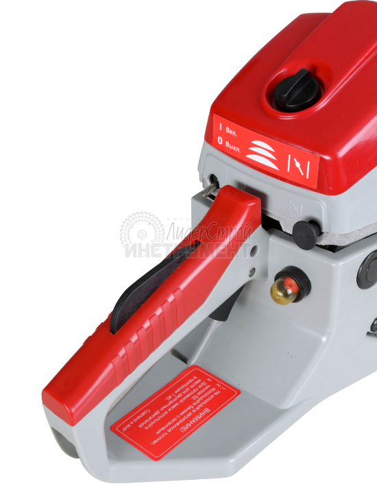 Система предохранителей и блокировок делает работу безопасной. Инерционный рычаг защищает от эффекта отдачи. Блокировка двигателя исключает работу одной рукой и случайный старт. Кнопка пуска блокируется от самопроизвольного включения.