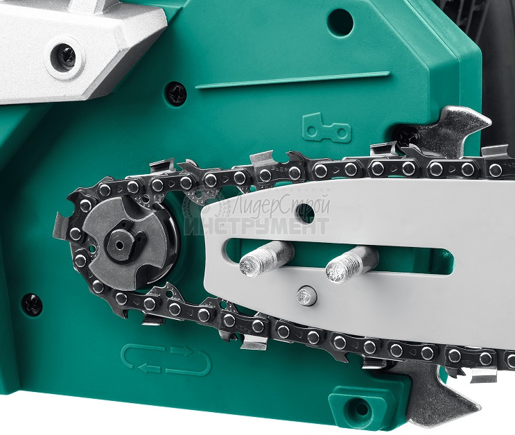 Шина длиной 406 мм позволяет распиливать заготовки большого диаметра