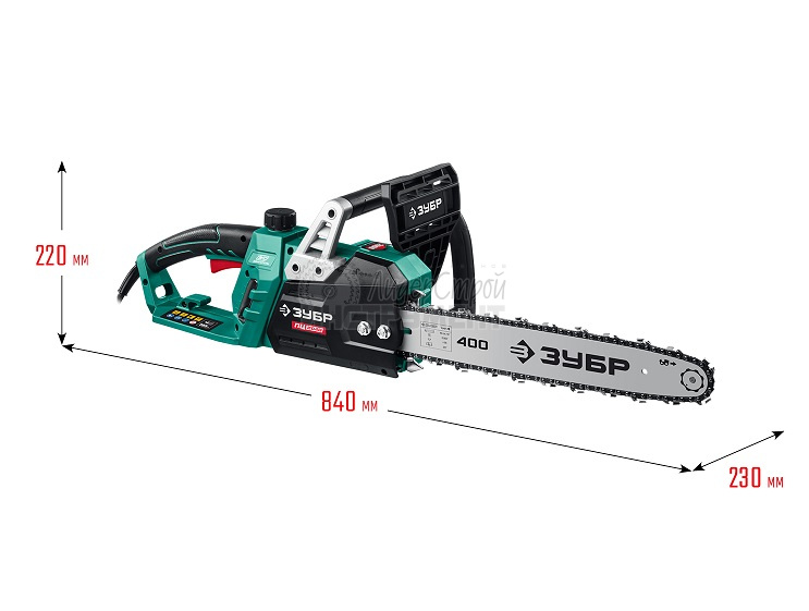 Универсальный и надежный помощник для валки деревьев, а так же пиления веток, обрезки сучьев, пиления деревянных бревен и проч. В отличие от бензиновой, электрическая пила оснащена надежным двигателем, не требует постоянных расходных материалов (топлива), не имеет проблем с запуском при любой температуре, требует минимальных операций при подготовке к работе. Мощный двигатель, простое натяжение и дозированная смазка цепи, практически отсутствующая вибрация, минимальное обслуживание делают пилу легкой в обращении и комфортной в работе. Мгновенная остановка цепи, приводимая в действие при откидывании защитного щитка, а также встроенный цепеуловитель и металлический упор способствуют безопасности применения. Для работы с инструментом дополнительно требуется приобрести масло (рекомендуем ЗУБР ЗМПМ) и удлинитель-шнур (сечение провода не менее 1 мм2).