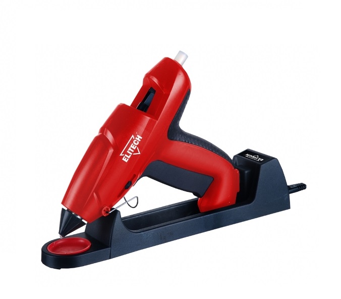 Термопистолет клеевой ELITECH ПКЛ 5015К. Предназначен для быстрого склеивания и фиксации чистых, сухих и обезжиренных материалов (дерево, пластмасса, картон, стекло, керамика, камень, ткани, пробка, кожа, металл) термоплавким клеем.