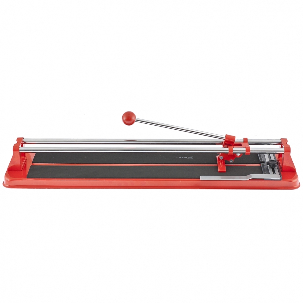 Предназначен для резки керамической кафельной плитки толщиной до 16 мм и длиной от 400 до 600 мм в зависимости от модели. Режущим элементом является ролик из твердого сплава ВК-8. Основание – цельнолитая станина, благодаря которой обеспечивается устойчивость инструмента на верстаке и абсолютная неподвижность разрезаемой плитки на обрезиненной поверхности станины. Две трубчатые направляющие изготовлены из хромированной стали с антикоррозийной пропиткой, что обеспечивает свободный ход каретки по направляющим в процессе резки. Каретка представляет собой массивный цельнолитой закрытый корпус. Благодаря шариковым подшипникам она перемещается по направляющим свободно даже при их загрязнении. Отсутствие люфтов (зазоров) в каретке позволяет выполнять рез максимально точно. Модели данных плиткорезов снабжены металлическим угольником для регулировки размера и дополнительной фиксации отрезаемой заготовки.